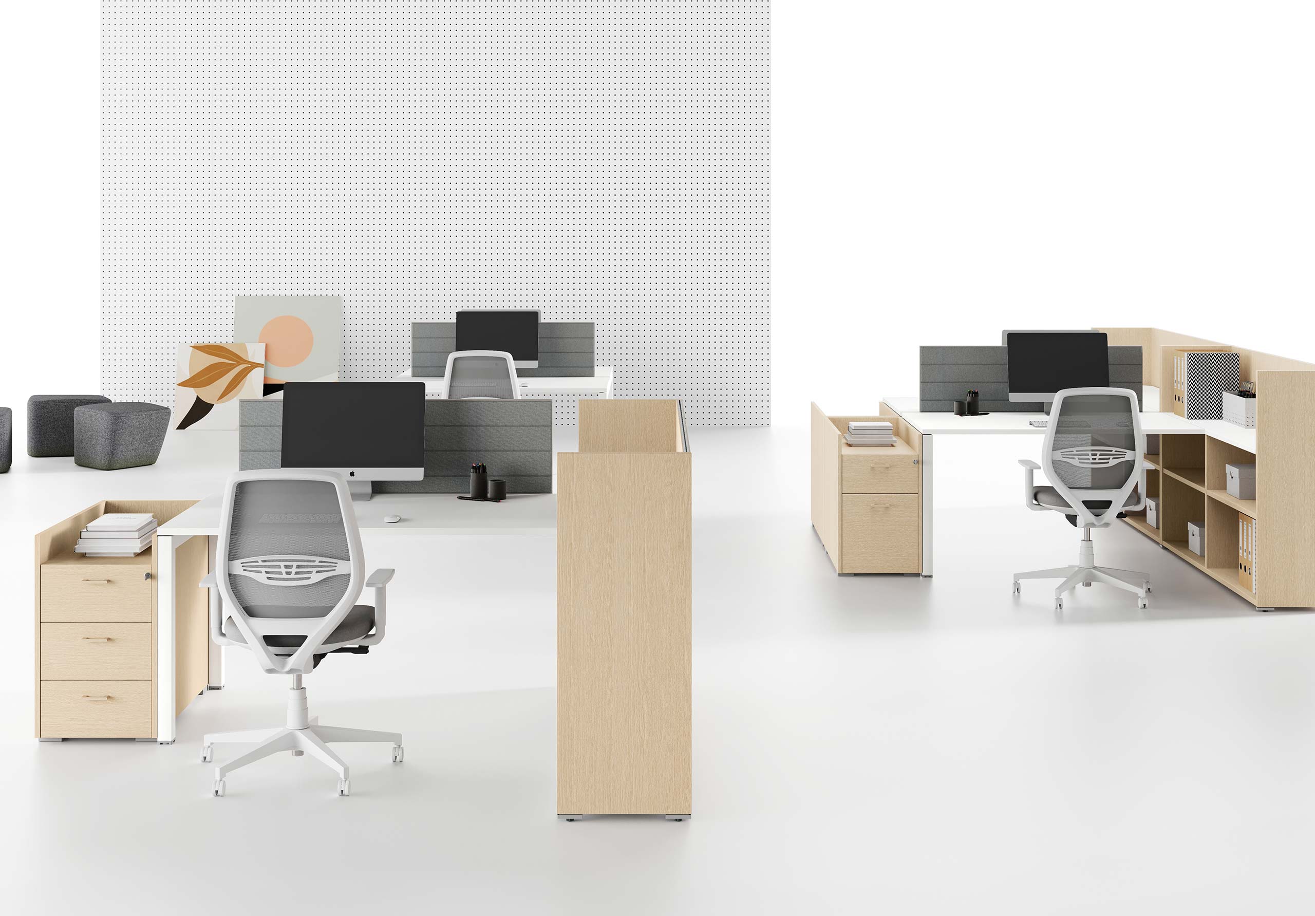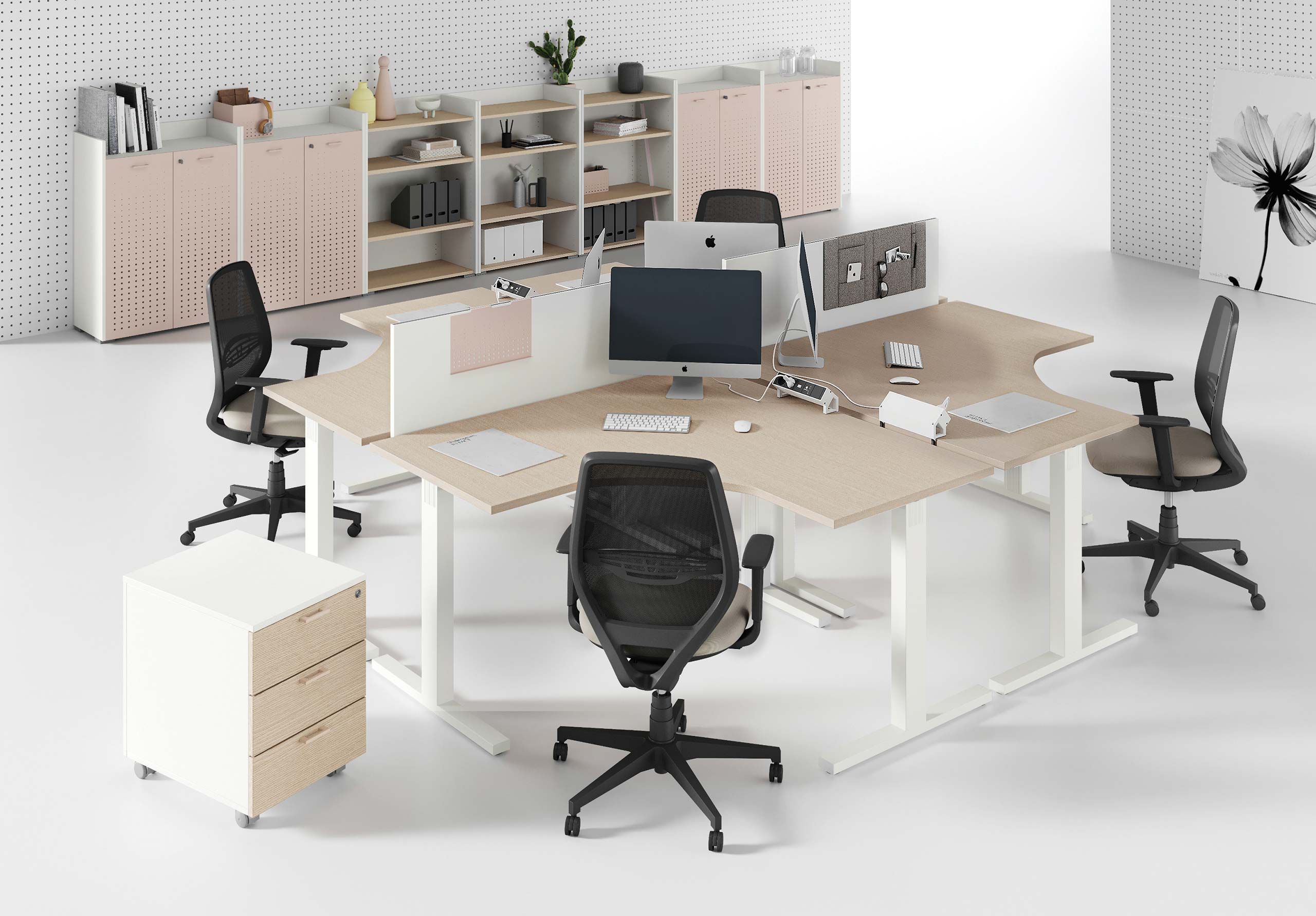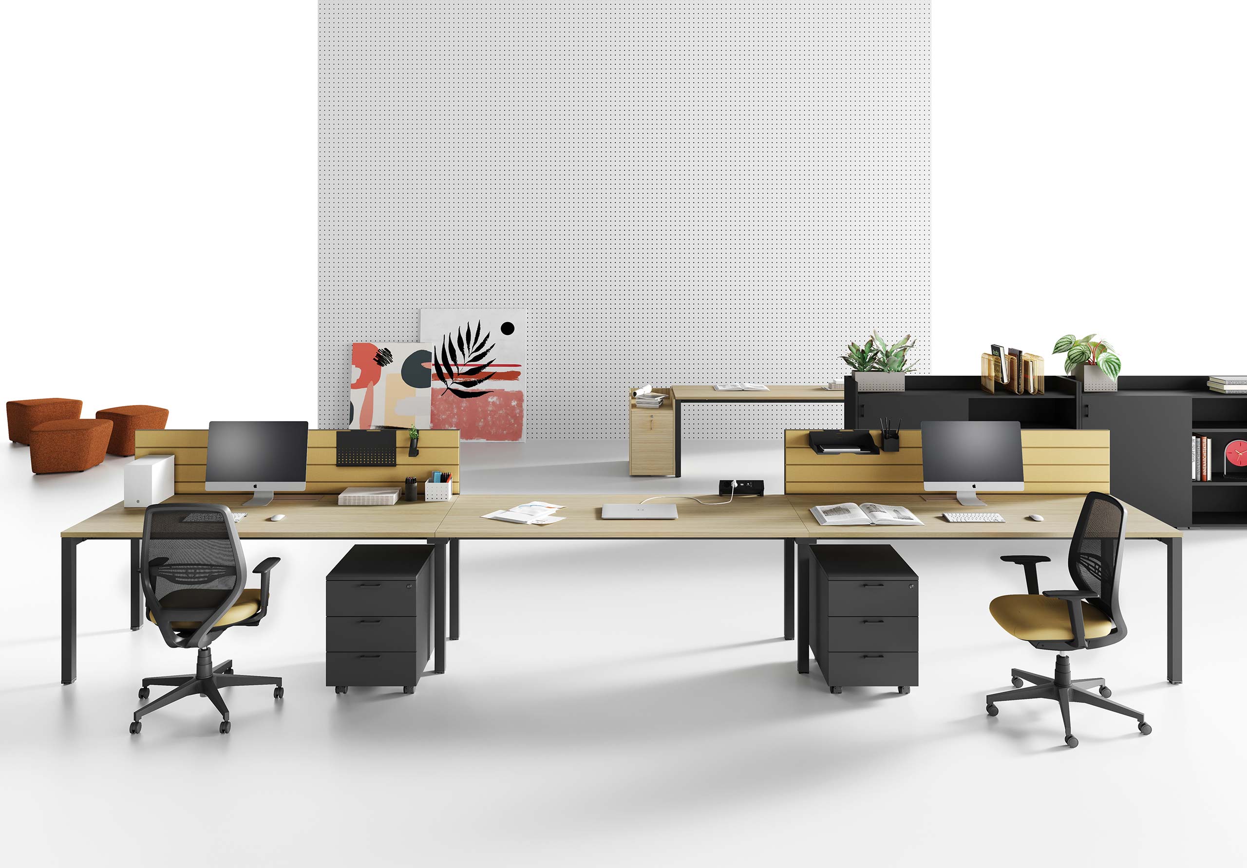 Pensée pour améliorer le bien-être des collaborateurs, cette gamme propose des solutions ergonomiques adaptées aux besoins de chacun : bureaux réglables en hauteur, systèmes de gestion de câbles intégrés, et accessoires modulaires pour un confort optimal. Les rangements assortis, comme les caissons mobiles ou les armoires, complètent parfaitement l’aménagement.