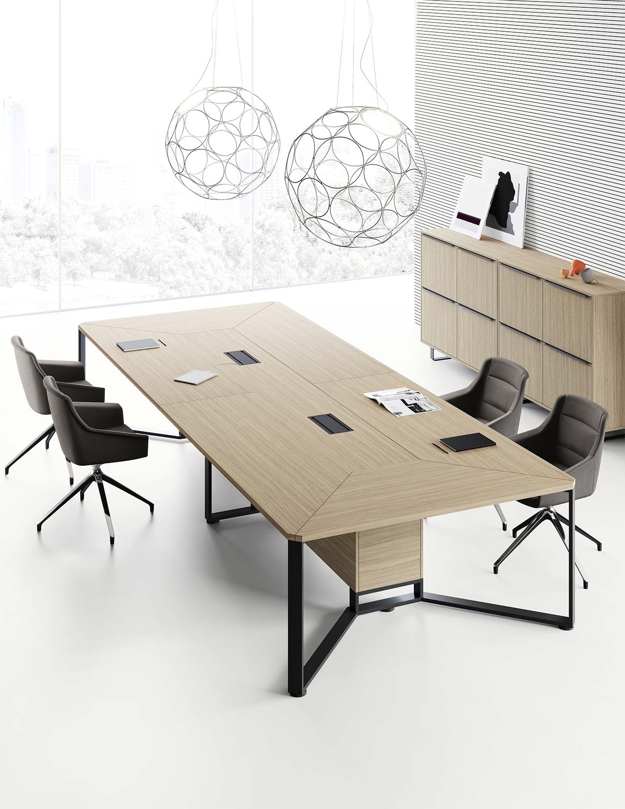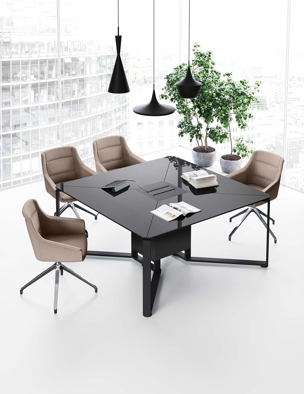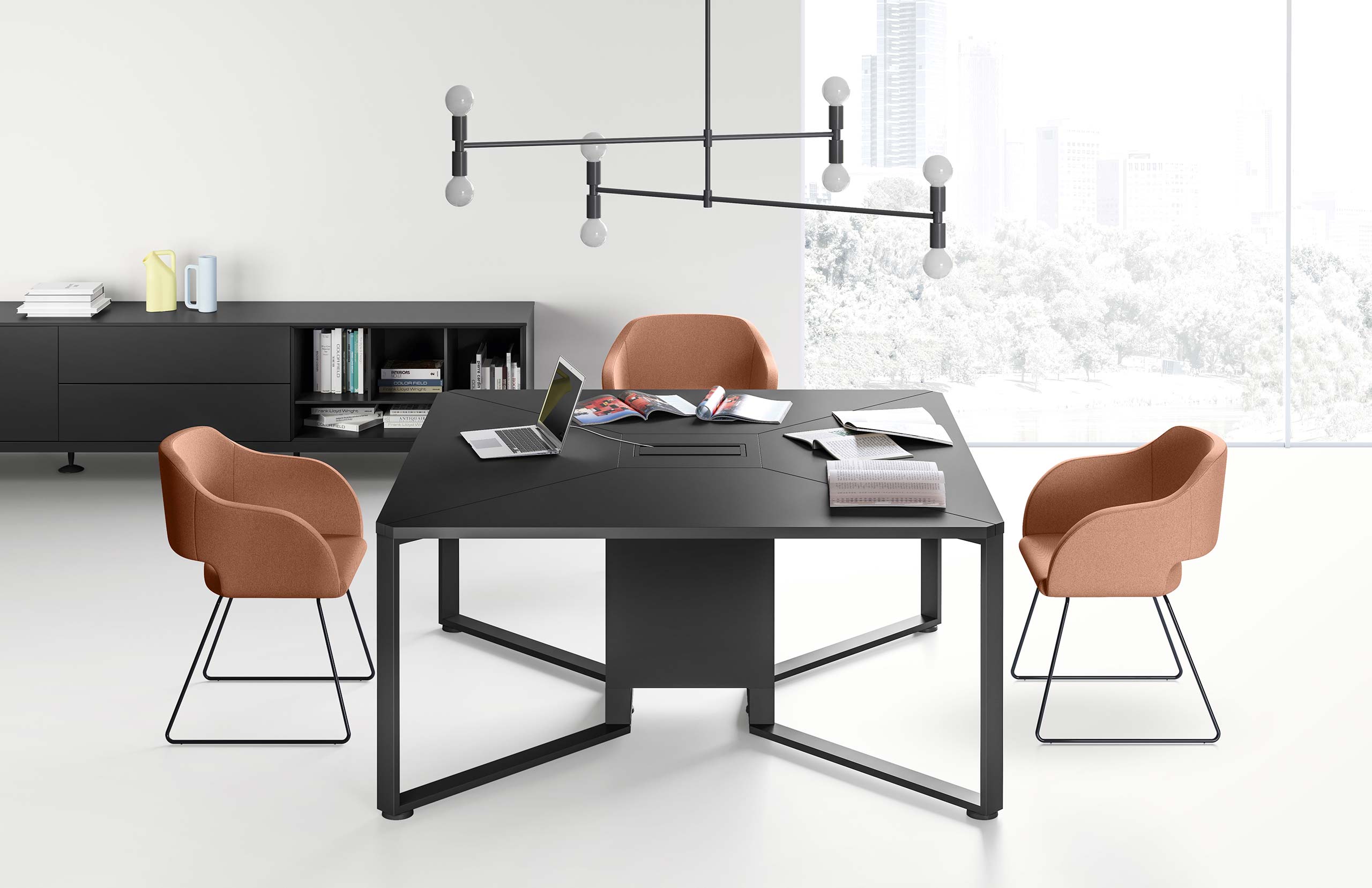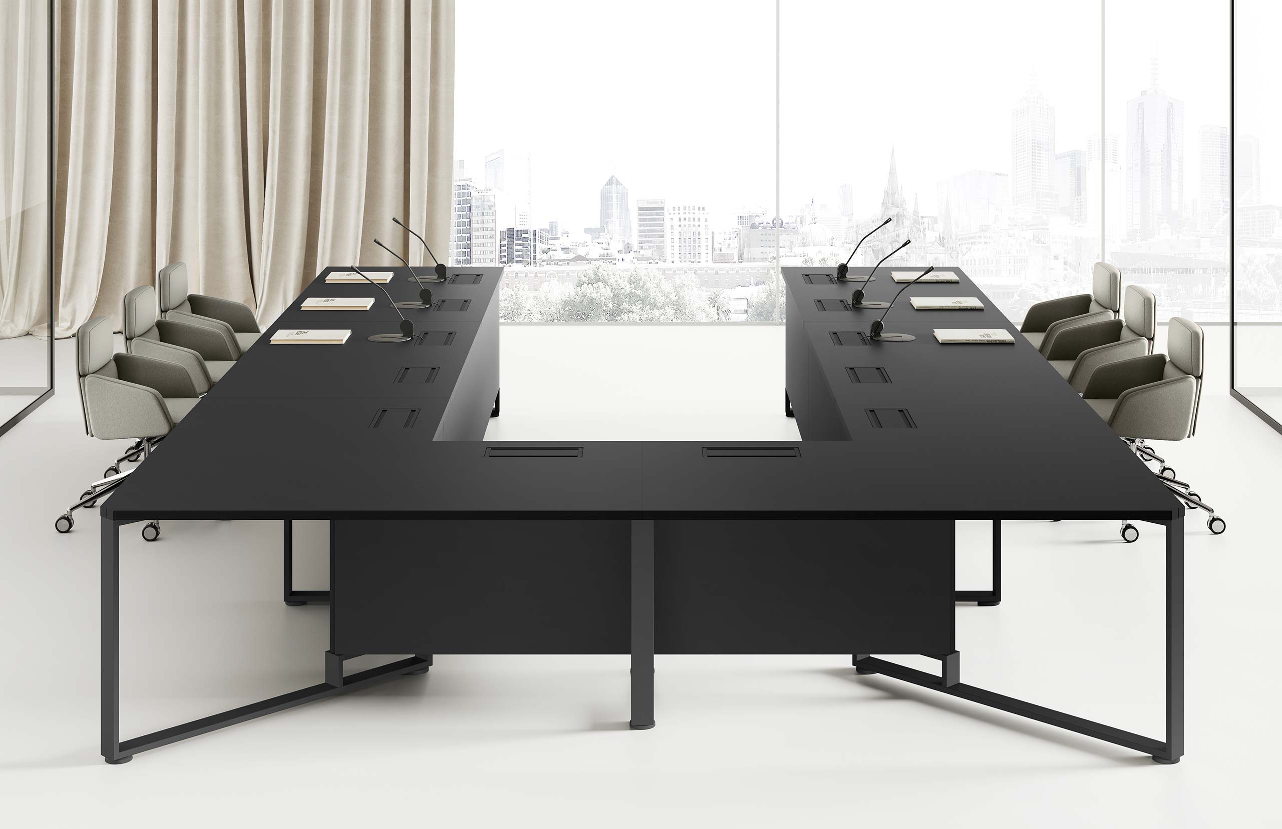 MEET se distingue également par son ingénierie fonctionnelle : gestion intégrée des câbles, options d’électrification et connectiques discrètes pour répondre aux besoins des équipements numériques. Son ergonomie favorise le confort des utilisateurs, même lors de longues réunions, tout en optimisant l’espace grâce à ses configurations flexibles.