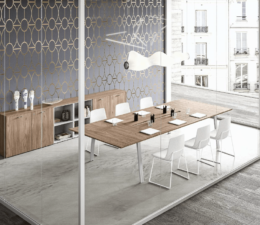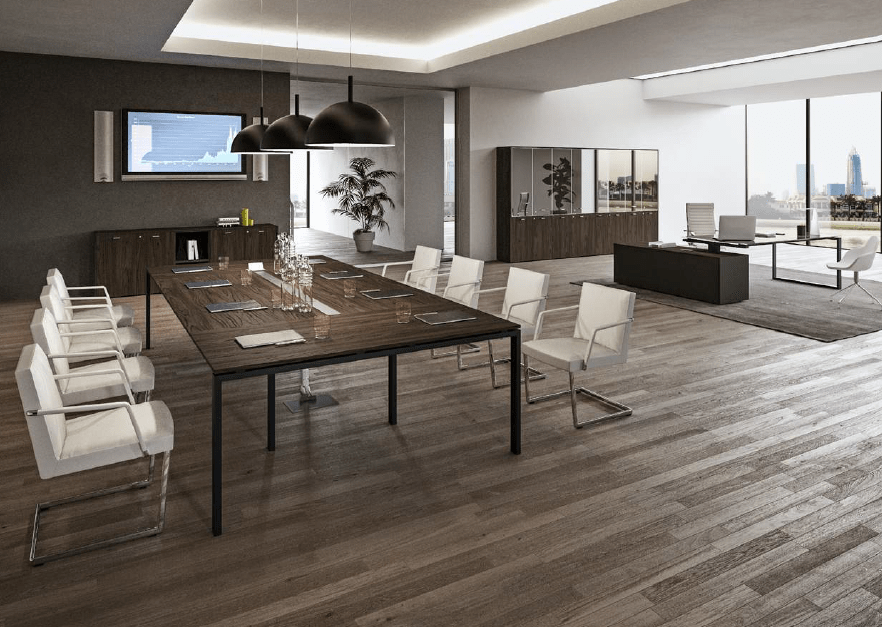 La table de réunion Vista Essence, issue de la gamme Nex Form, incarne l’équilibre parfait entre design moderne, fonctionnalité et robustesse. Conçue pour répondre aux besoins des entreprises exigeantes, elle allie esthétisme et praticité, faisant d’elle un véritable atout pour vos espaces de travail collaboratif.